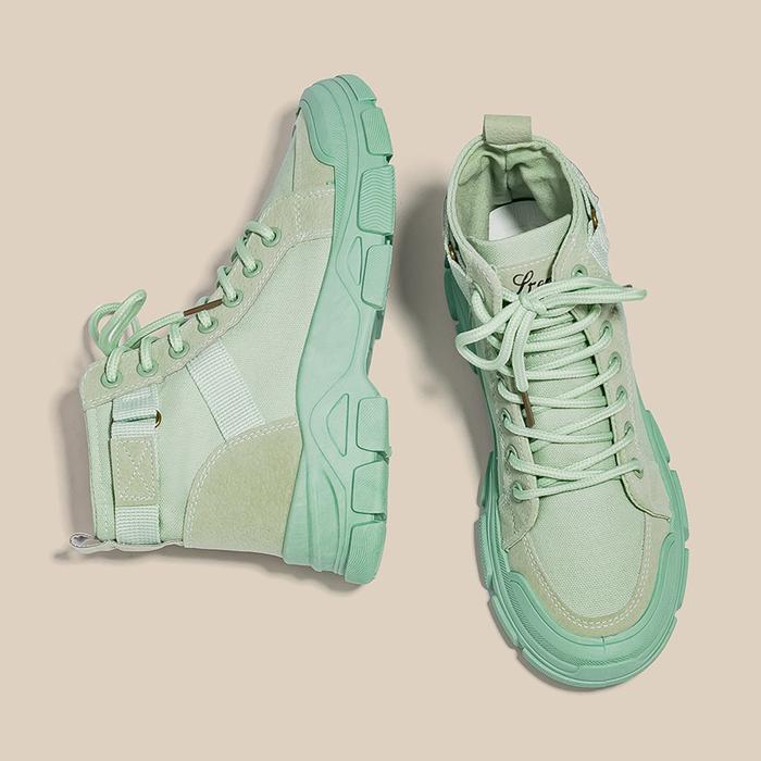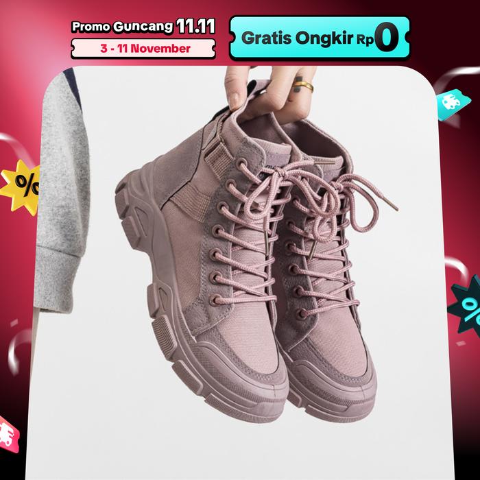 PINKEY PINKEY P018 SEPATU WANITA SNEAKERS BOOTS SHOES CANVAS KARET TINGGI SOL 4.5 CM INSOLE SPONGE BERLUBANG COMFY ELEGANT UNTUK KAKI GEMUK PILIH UKURAN LEBIH BESAR - HITAM, 36