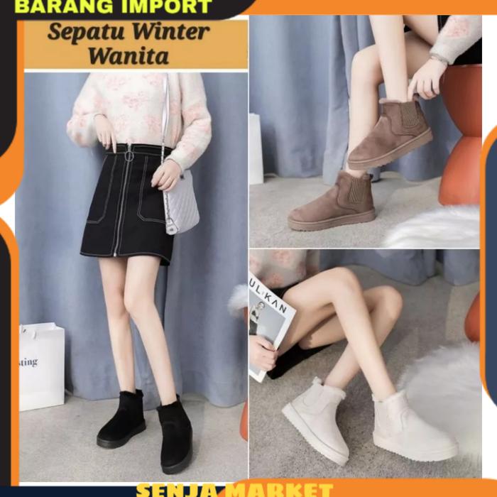 SEPATU WINTER ANAK DEWASA MUSIM DINGIN SALJU BULU TEBAL HANGAT ANAK WANITA - HITAM, 37
