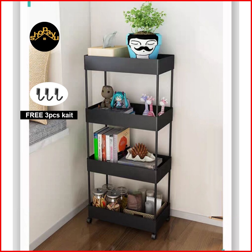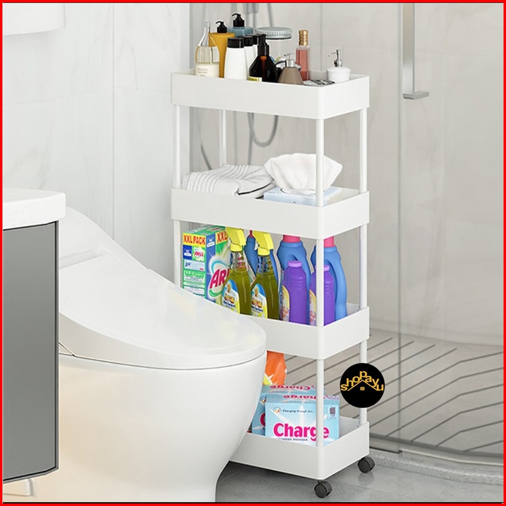 Rak Troli Square Plastik Rak Toilet Rak Kamar Mandi Rak Dapur Serbaguna Rak Susun Portable Roda