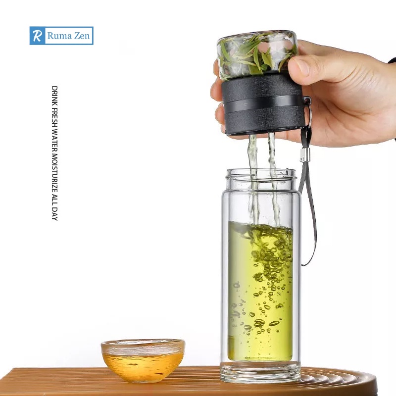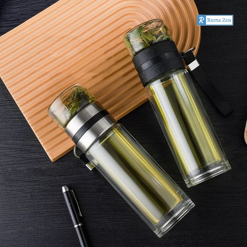 BOTOL DOUBLE GLASS BOTTLE TEA PURIFIER INFUSED WATER BOTOL MINUM ANAK
