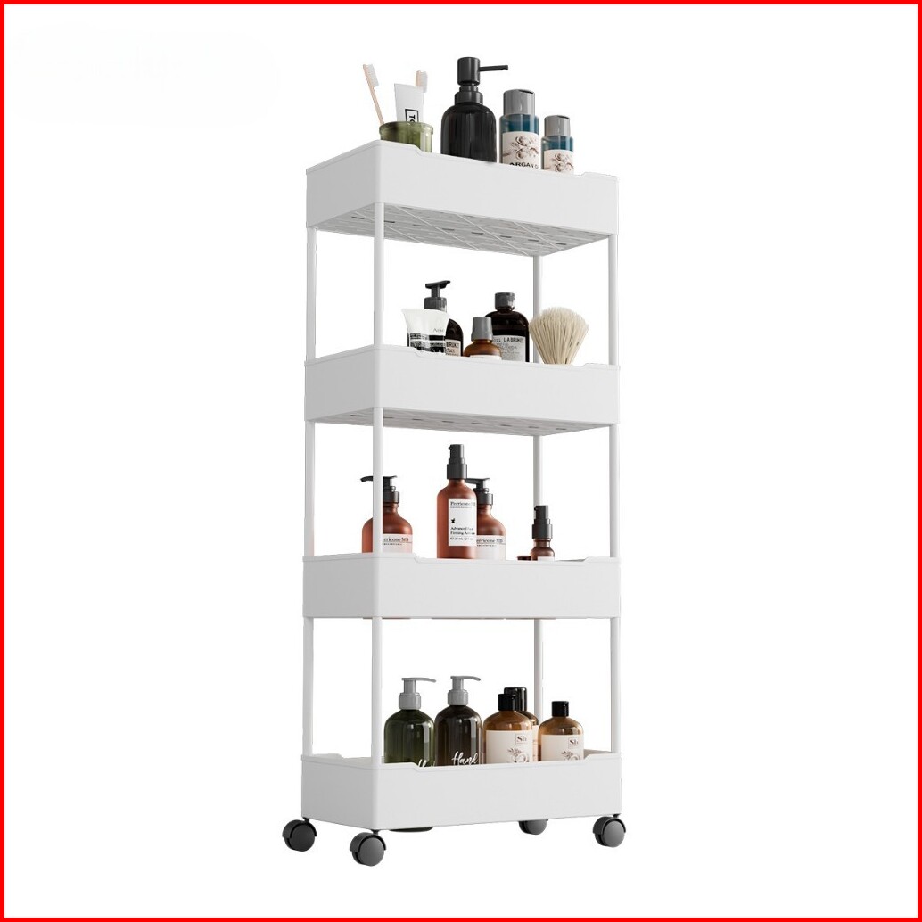 Square Rak Dapur Rak Toilet Rak Susun Serbaguna Rak Dorong Rak Salon Rak Troli 4 Tingkat Dengan Roda