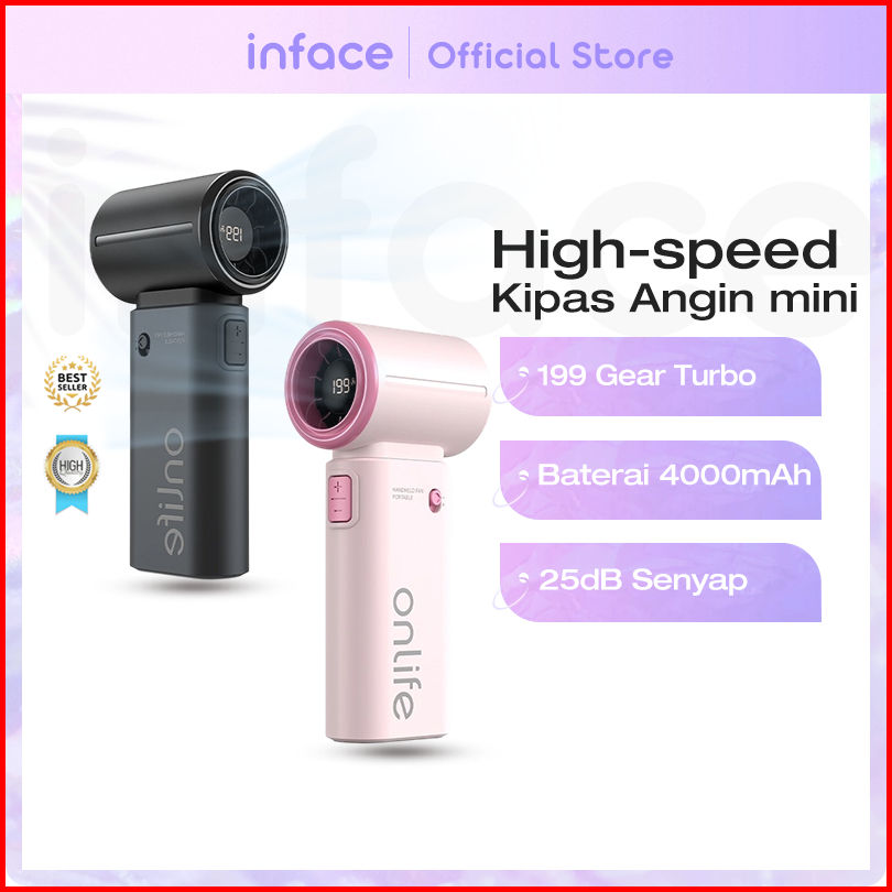 Inface Kipas Angin Mini Portable Dingin Cepat 199 Gear Turbo High Speed 20000rpm Baterai 4000mah