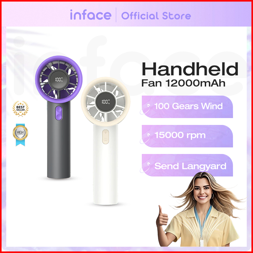 Inface Mini Kipas Strong Wind 100 Gear Wind Speed Kipas Angin Digital Display Adjustable Turbo Kipas Tangan Untuk Olahra