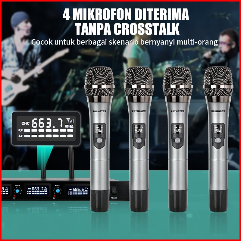 Rayhayes Uhf Wireless Microphone With 4 Handhelds Adjustable Frequency For Home Party Karaoke Events