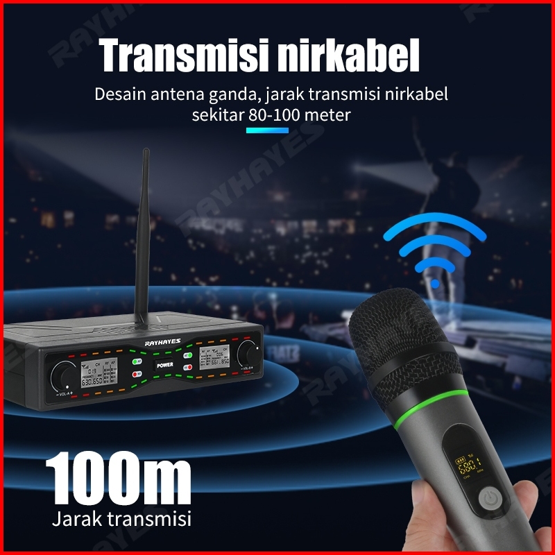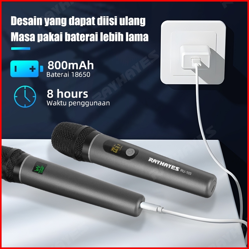 Rayhayes Ru-103 Mikrofon Nirkabel Isi Ulang Mikrofon Genggam Uhf Plug And Play Peralatan Bernyanyi