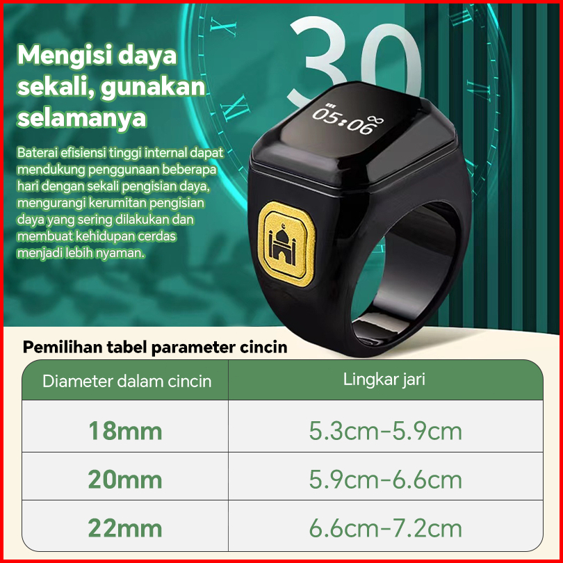 Cincin Doa Bluetooth Pintar Smart Tasbih Counting Ring Tasbih Digital Bluetooth Cincin Tasbih Digital Elektronik - Hitun