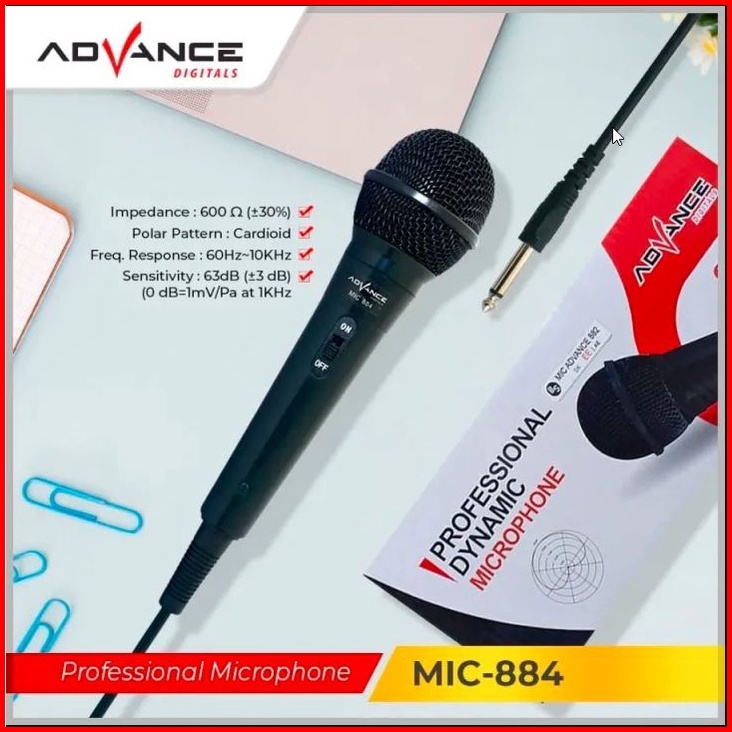 Advance Mic884 Karaoke Profesional Dynamic Microphone Mic Kabel Jack Besar 6.5mm Ada Switch On Off Suara Mantap Mic Kabe