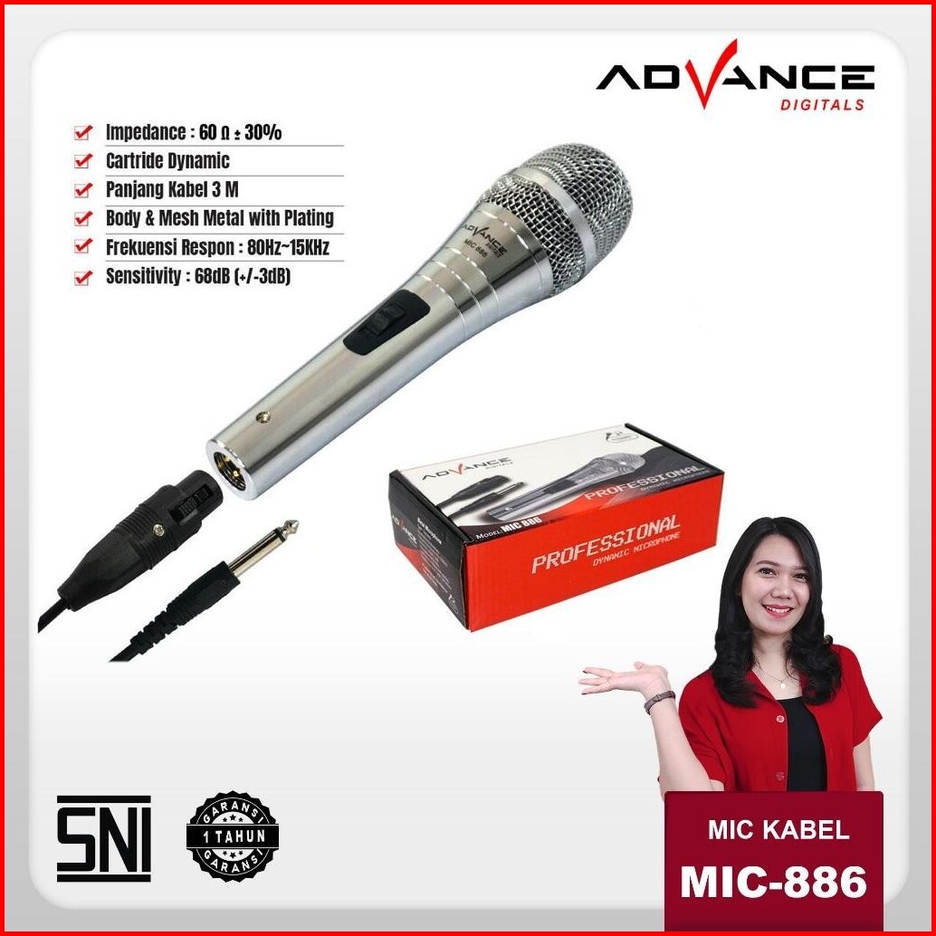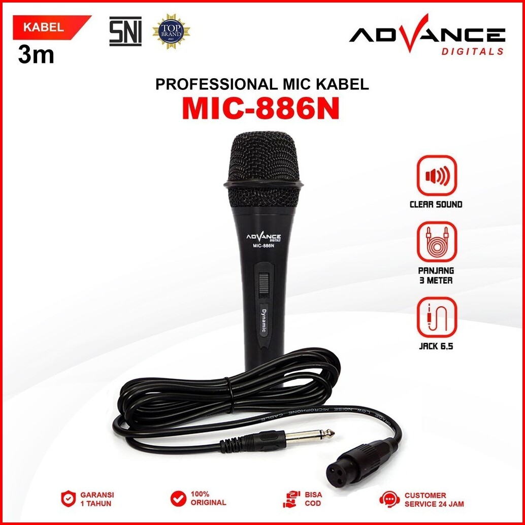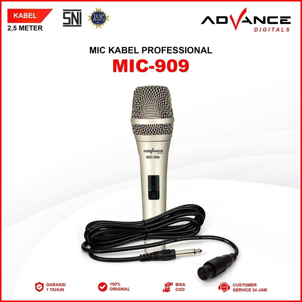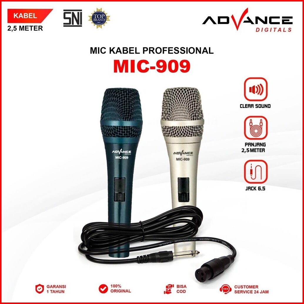 Advance Microphone Mic Kabel 2.5 Meter Audio Jack 6.5 Mm Varian Mic-909 Mic-901 Mic-884 Mic-886