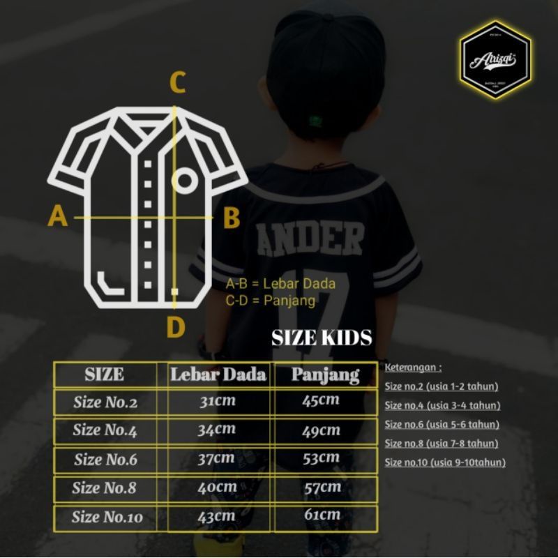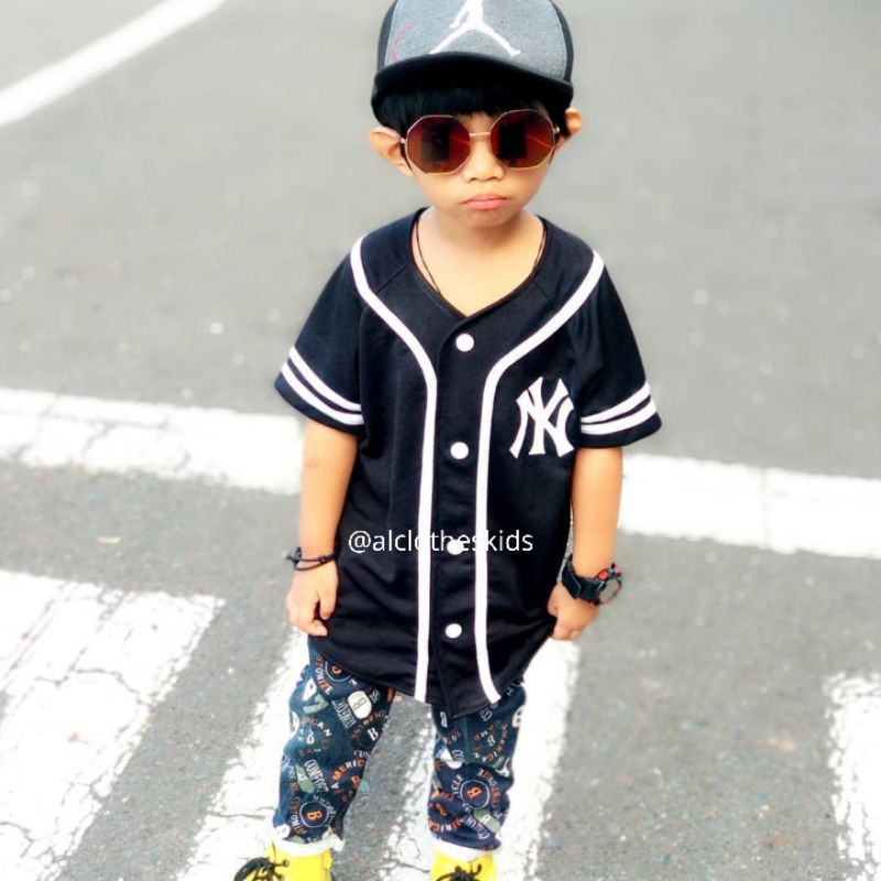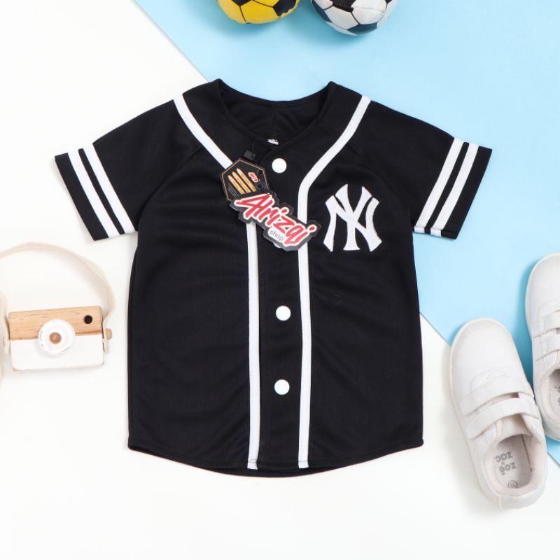 Jersey Baseball Anak Warna Hitam List Putih