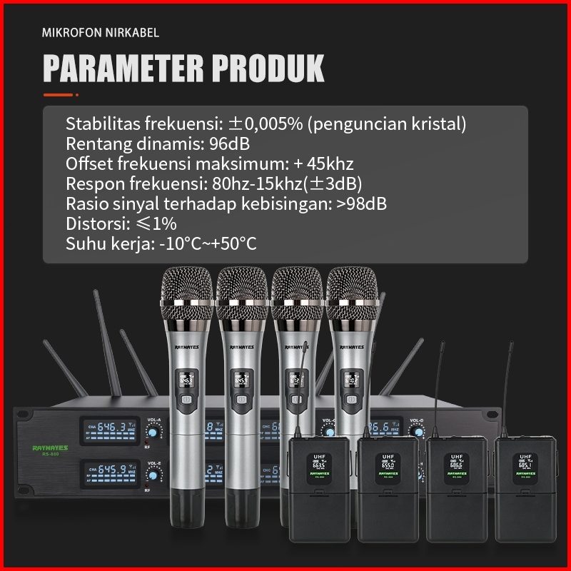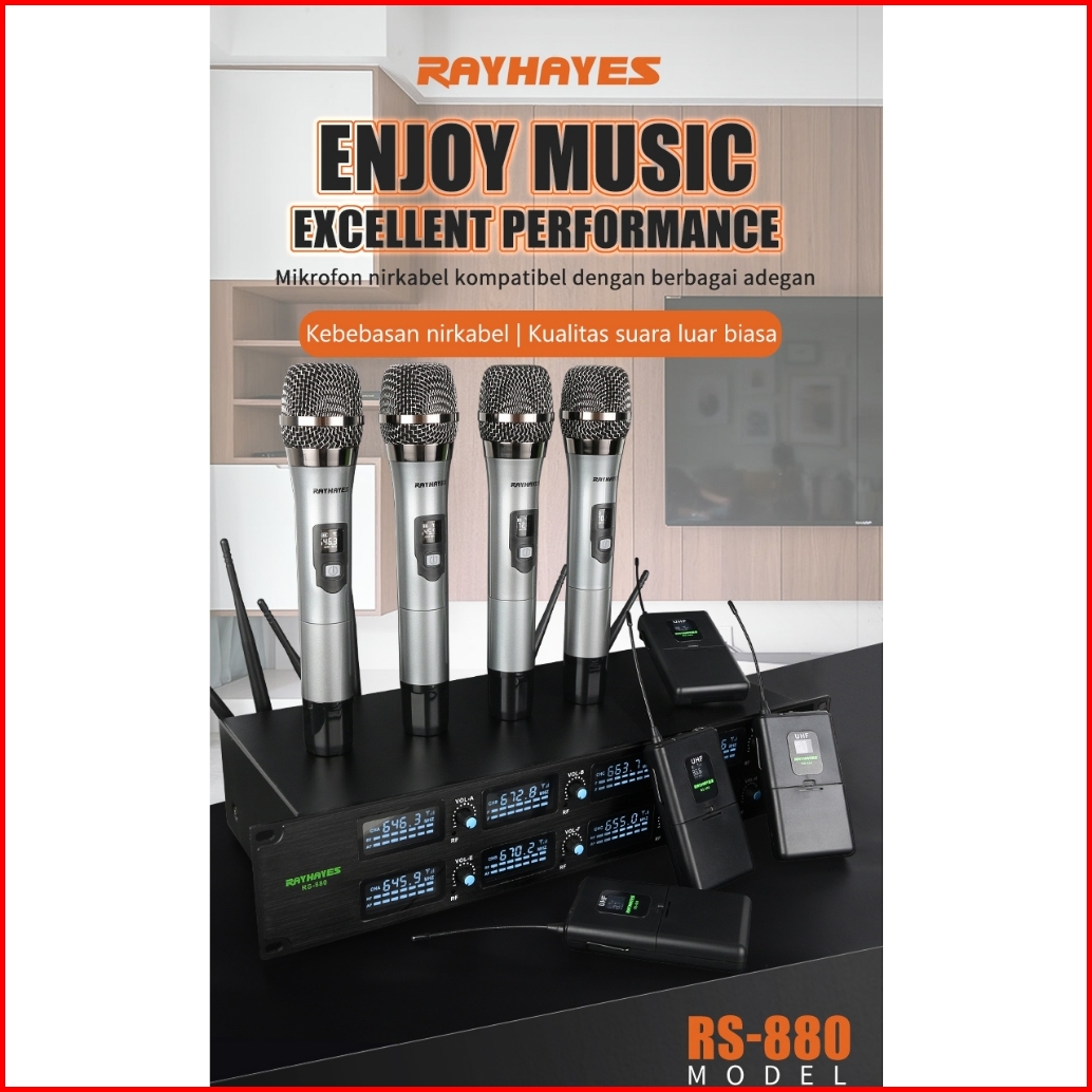 Mikrofon Nirkabel Uhf Rayhayes Rs-880 Dengan 4 Genggam Frekuensi Yang Dapat Disesuaikan Untuk Pesta Karaoke