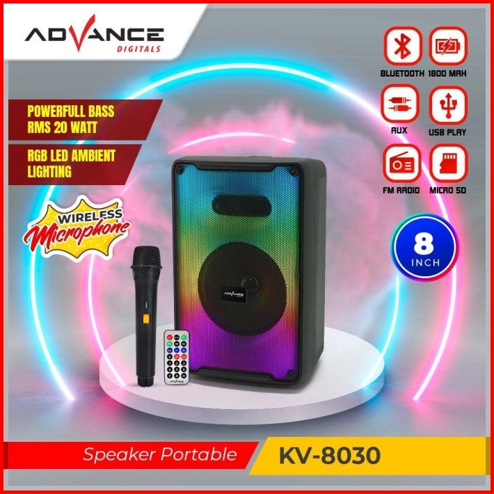 Advance Speaker Bluetooth Karaoke Meeting Speaker Portable 8inch Rgb Led Speaker Kv8030 Garansi Resmi 1tahun