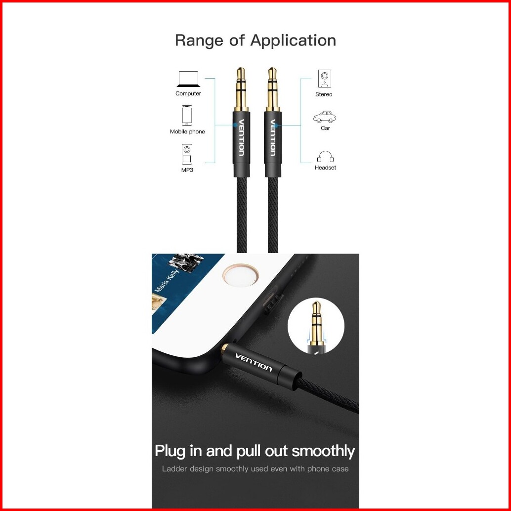 Vention Audio Cable Kabel Aux 3.5mm Male To Male Fabric Braided