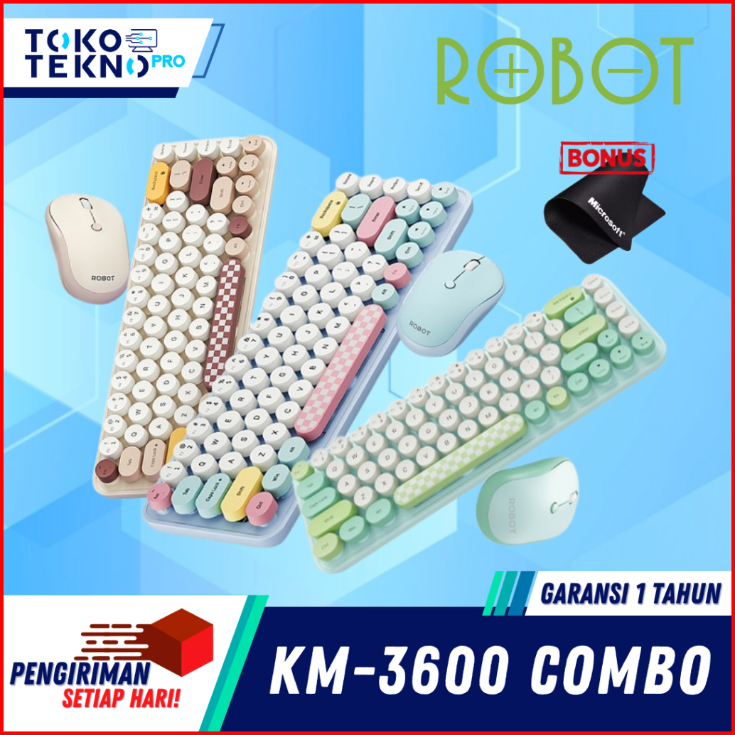 Robot Km3600 Km-3600 Pastel Colorful Keyboard Dan Mouse Wireless Combo