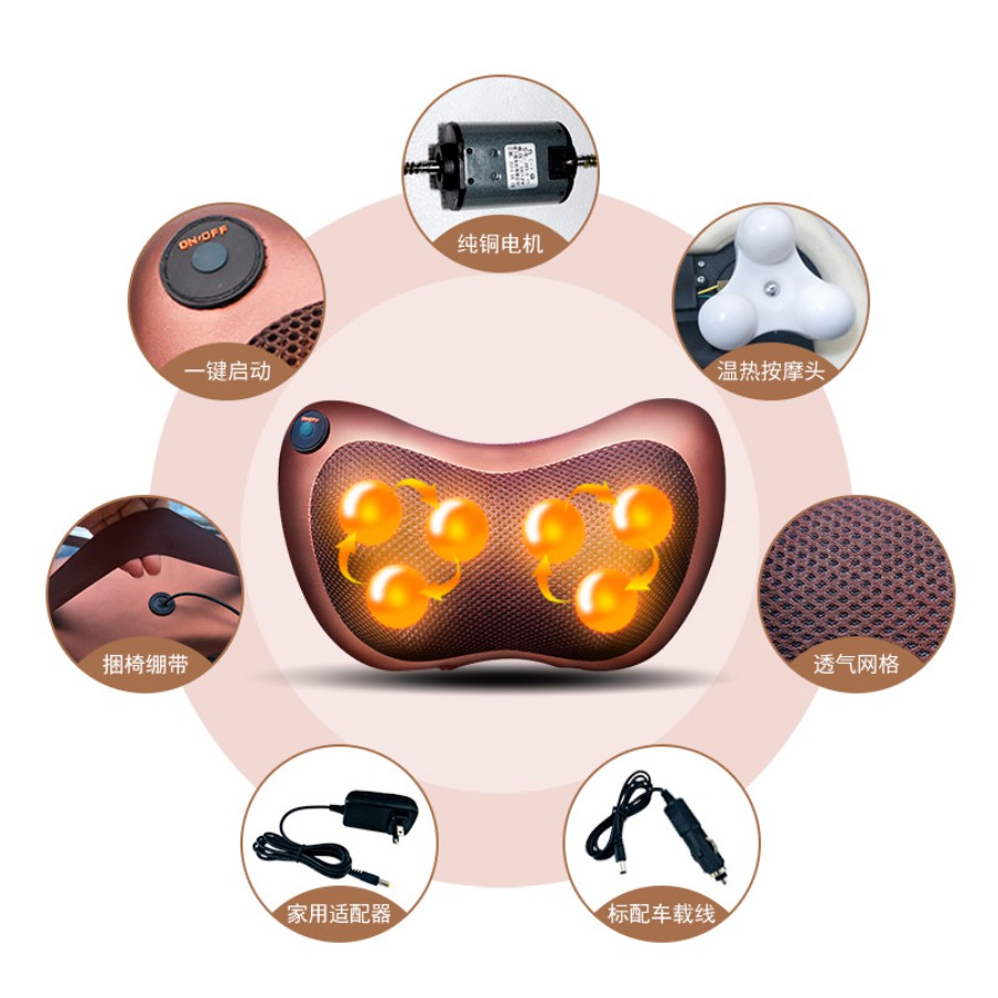 Bantal Pijat Elektrik 8 Bola – Alat Pijat Leher & Punggung Portable Car Home Massage Pillow Panas Terapi Relaksasi
