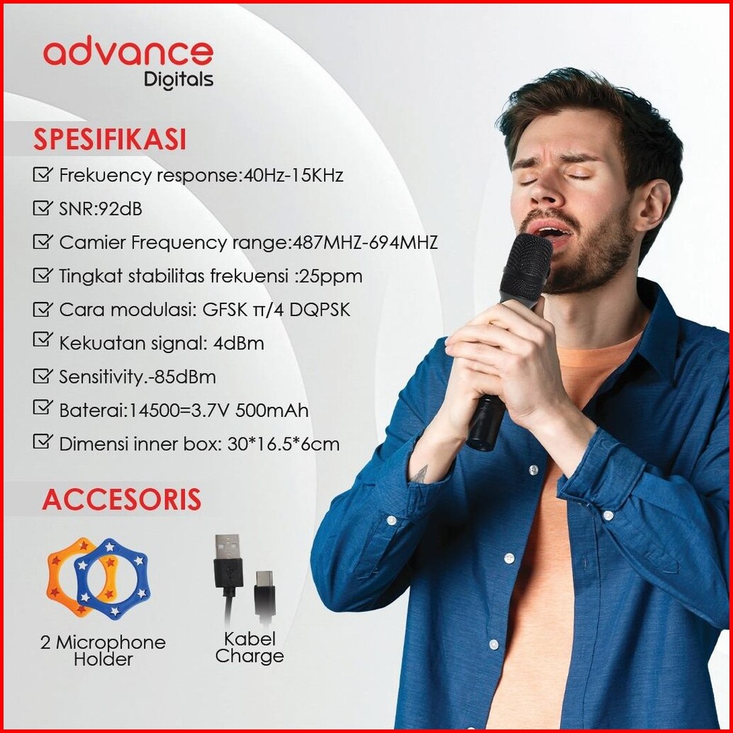 Advance Mic-210 Double Mic-wireless Recharger Digunakan Untuk Souncard Speaker Garansi Resmi 1 Tahun