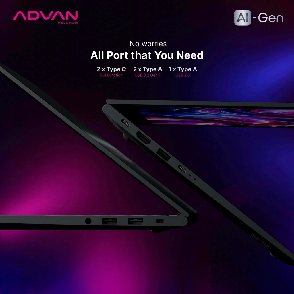 ADVAN AI GEN Amd Ryzen 7 8845HS RAM32GB SSD2TB 14'' Ips Windows 11