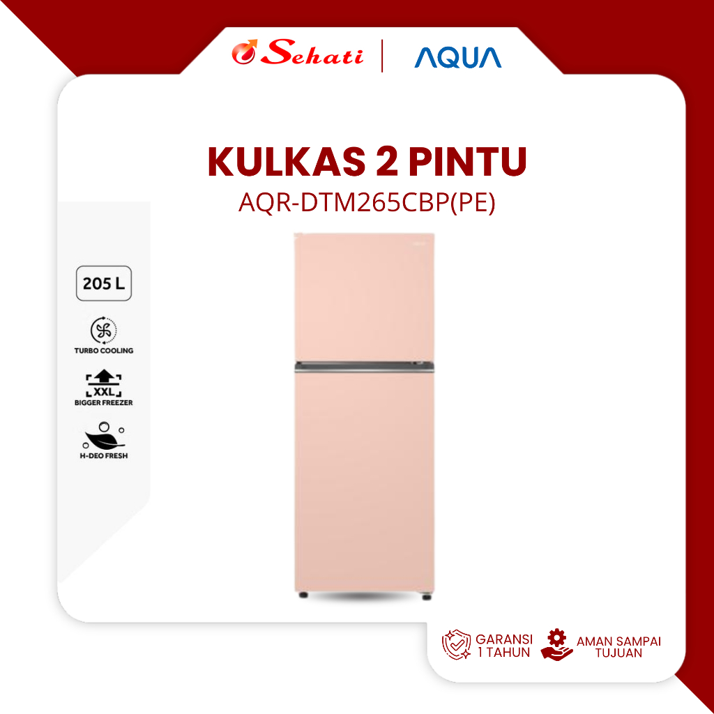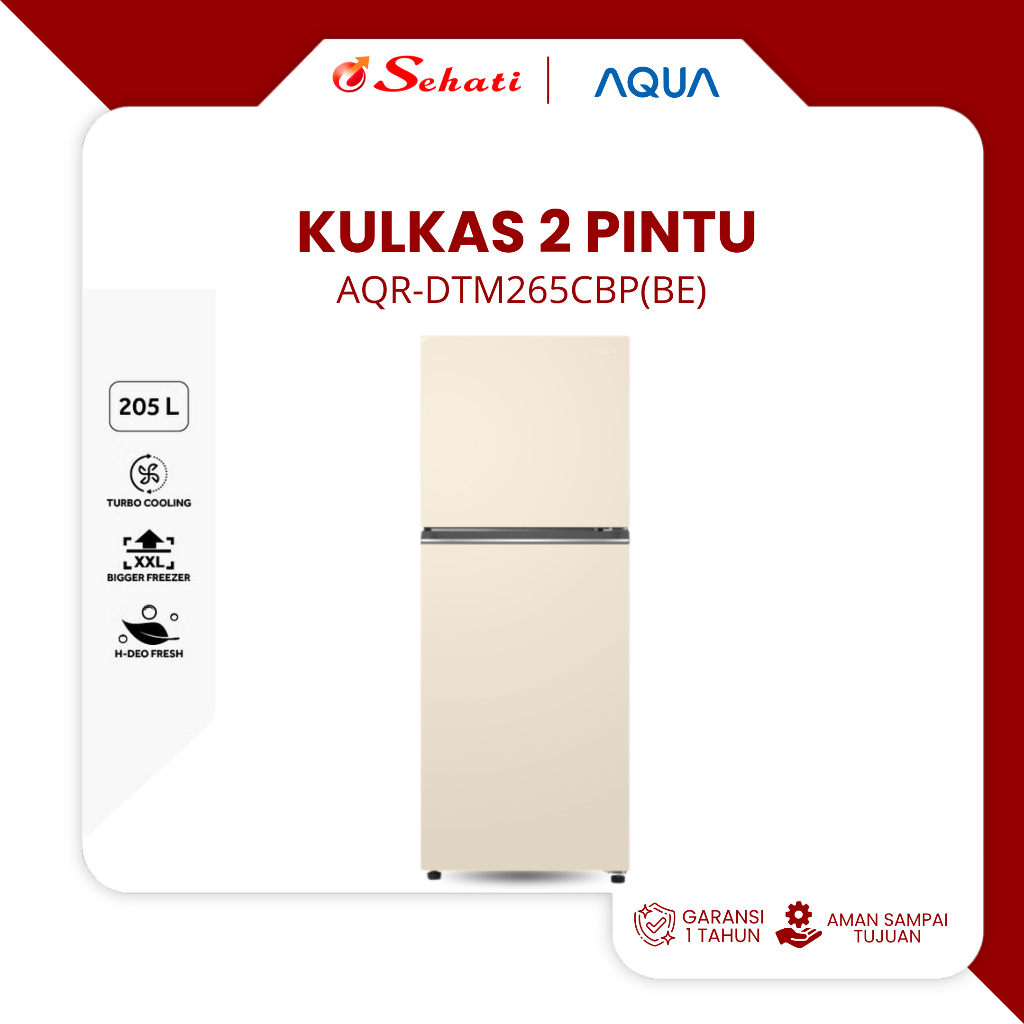 AQUA AQR-DTM265CBP Lemari Es Aqua Kulkas 2 Pintu 205 Liter - Resmi