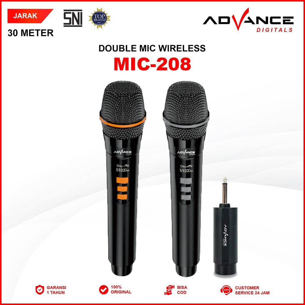 Advance Mic-208 Double Mic Wireless Recharger Bisa Digunakan Untuk Souncard Speaker Garansi Resmi 1 Tahun