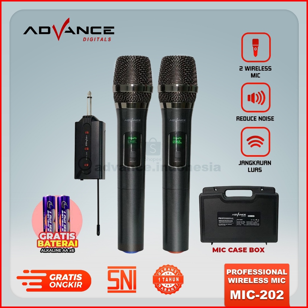 Advance Wireless Microphone Mic Wireless Double Professsional Mic Karaoke Mikropon Professional Mic202