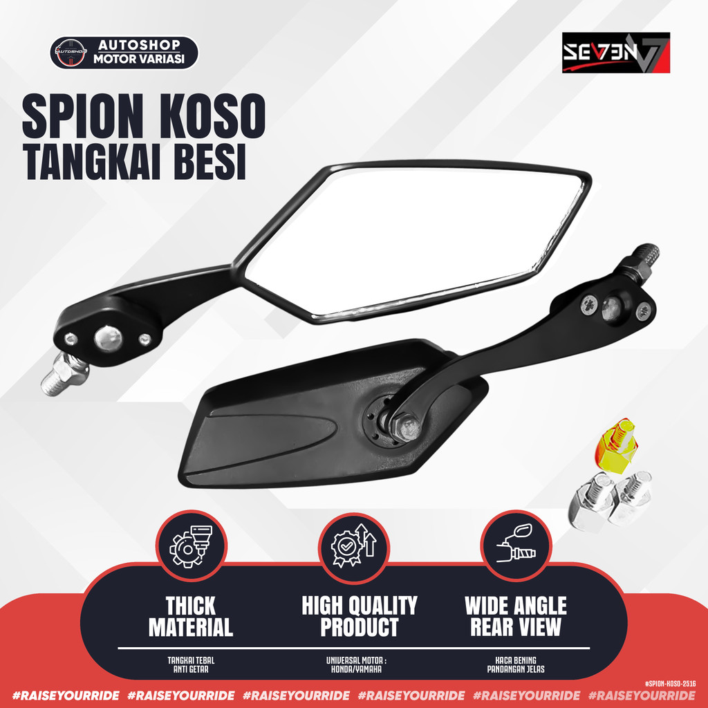 [SEVEN] Spion KOSO CNC Tangkai Besi Hitam – Kaca Bening Datar Universal Motor | Vario Beat NMAX XMAX PCX - NOAFF