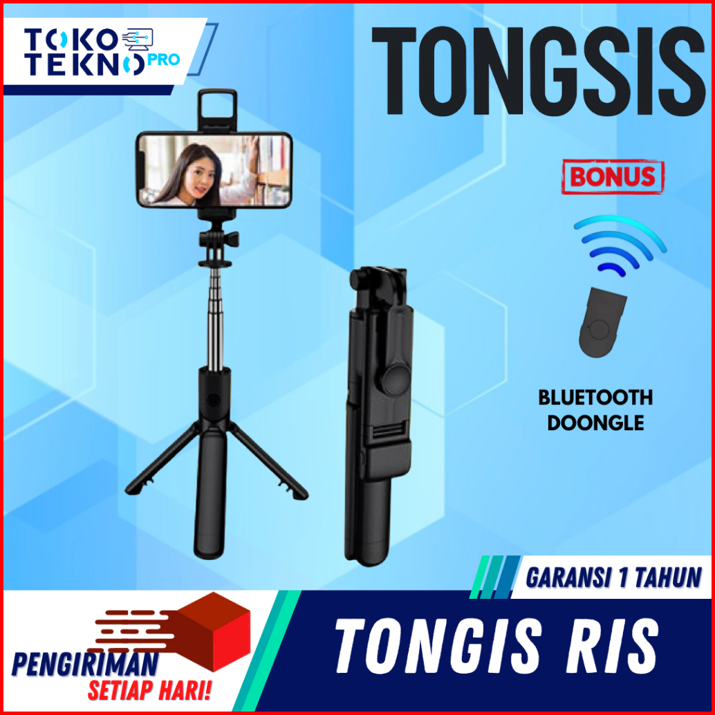 Tongsis Tripod Bluetooth 4in1 Led With Remote Control Portable Mini Lightweight Flexible Selfie Stick 360