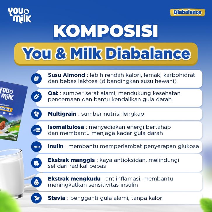 [Star] Susu You & Milk Diabalance 3 Box Susu Almond Stevia Cegah Diabetes Turunkan Gula Darah Tanpa Kimia 200g
