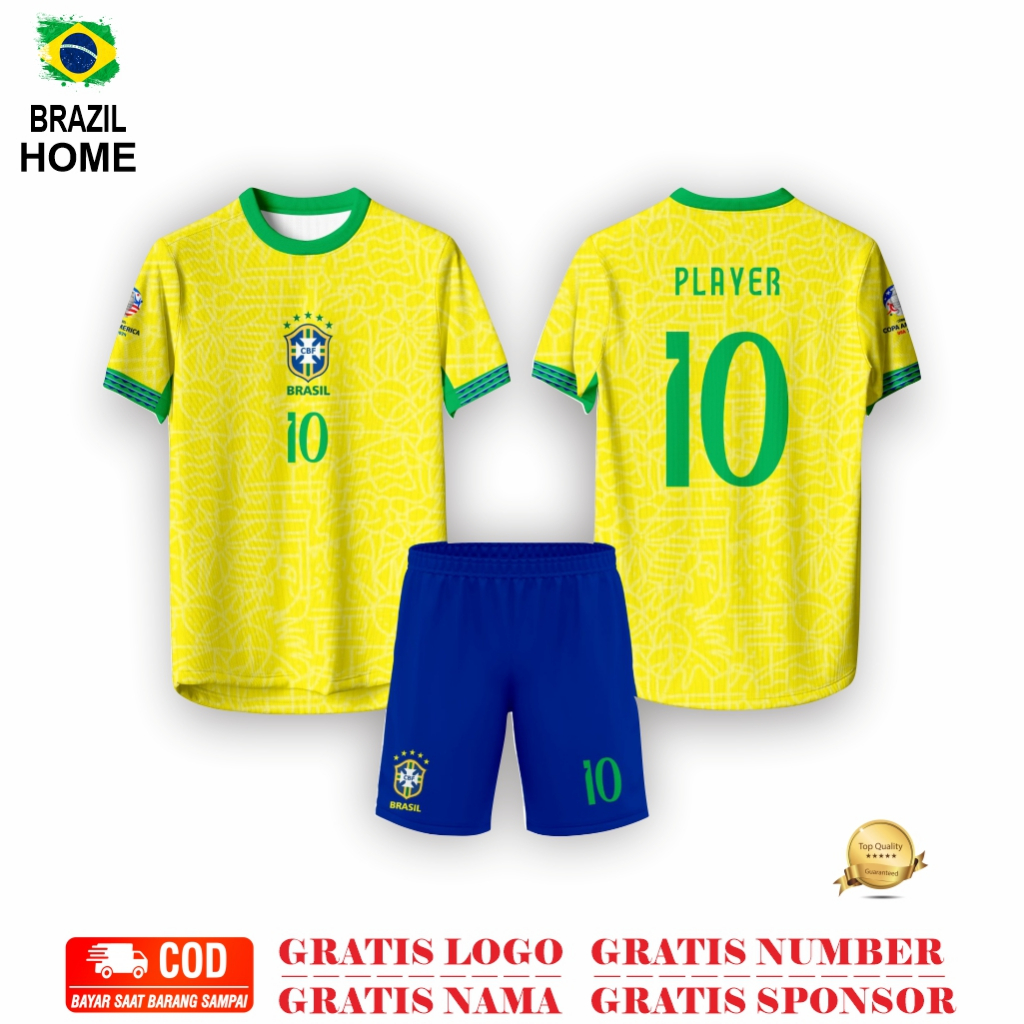 JERSEY TIMNAS BRAZIL TERBARU 2024 COPA AMERICA HOME AWAY FULL PRINTING PREMIUM CUSTOM NAMA SIZE ANAK & DEWASA