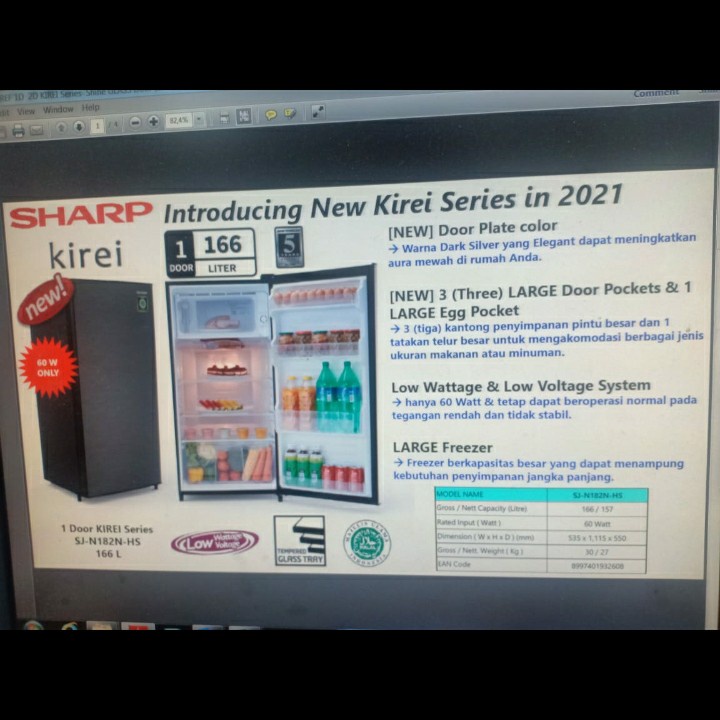 KULKAS SHARP SJ-N182N NEW KIREI 1 PINTU LOW WAT 182N