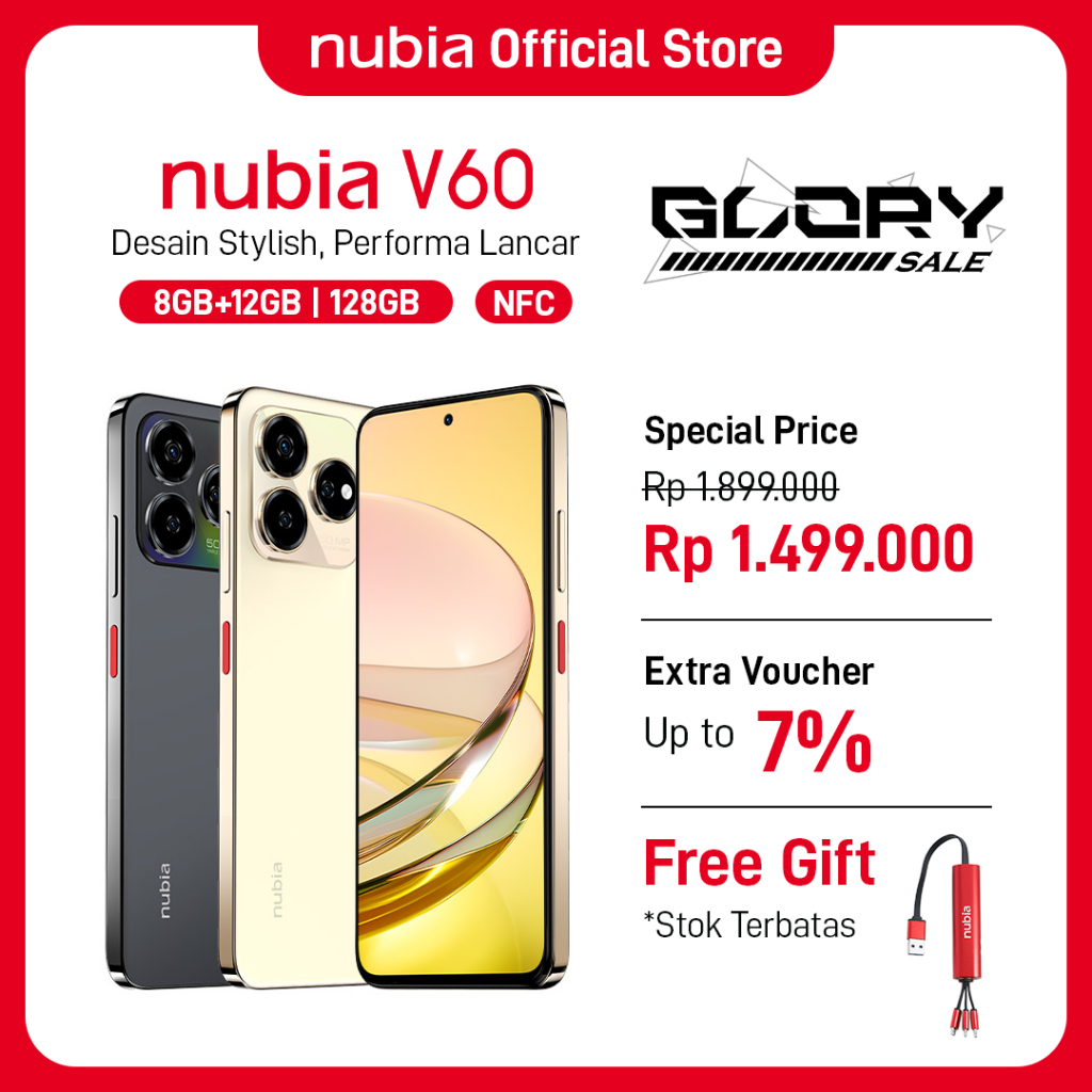 nubia V60 NFC RAM 8GB+12GB + ROM 256GB 5.000 mAh 50MP AI Triple Camera Ultra Slim Body Garansi Resmi Android