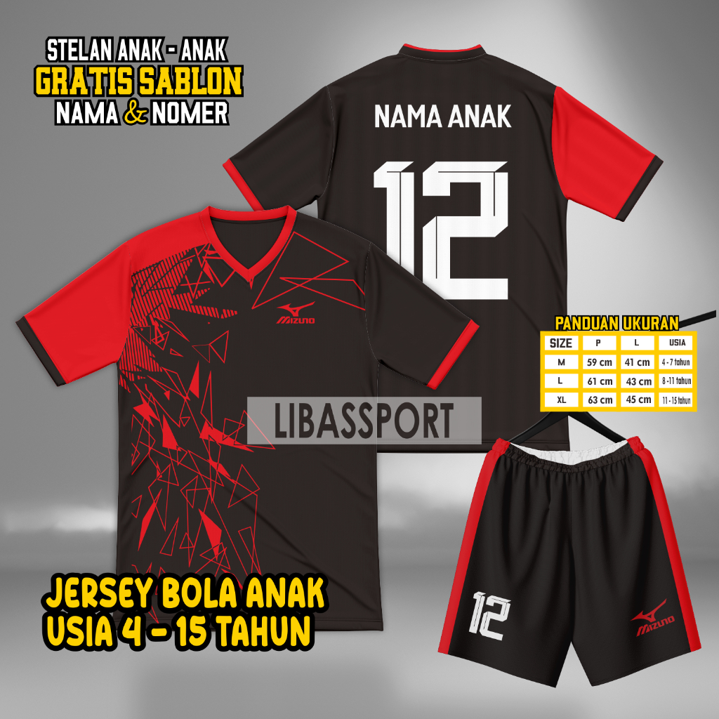 Setelan Baju Futsal anak Terbaru Free custom Sablon Nama & Nomer Punggung, Jersey Bola anak