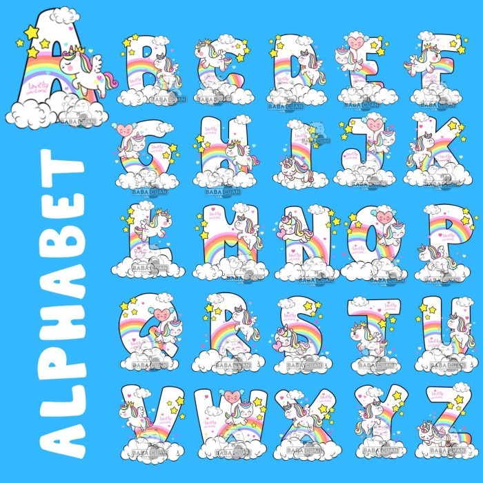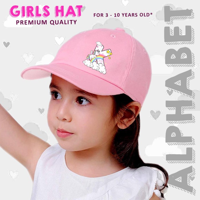Topi Baseball Anak Cewek Alfabet Huruf A-Z Unicorn