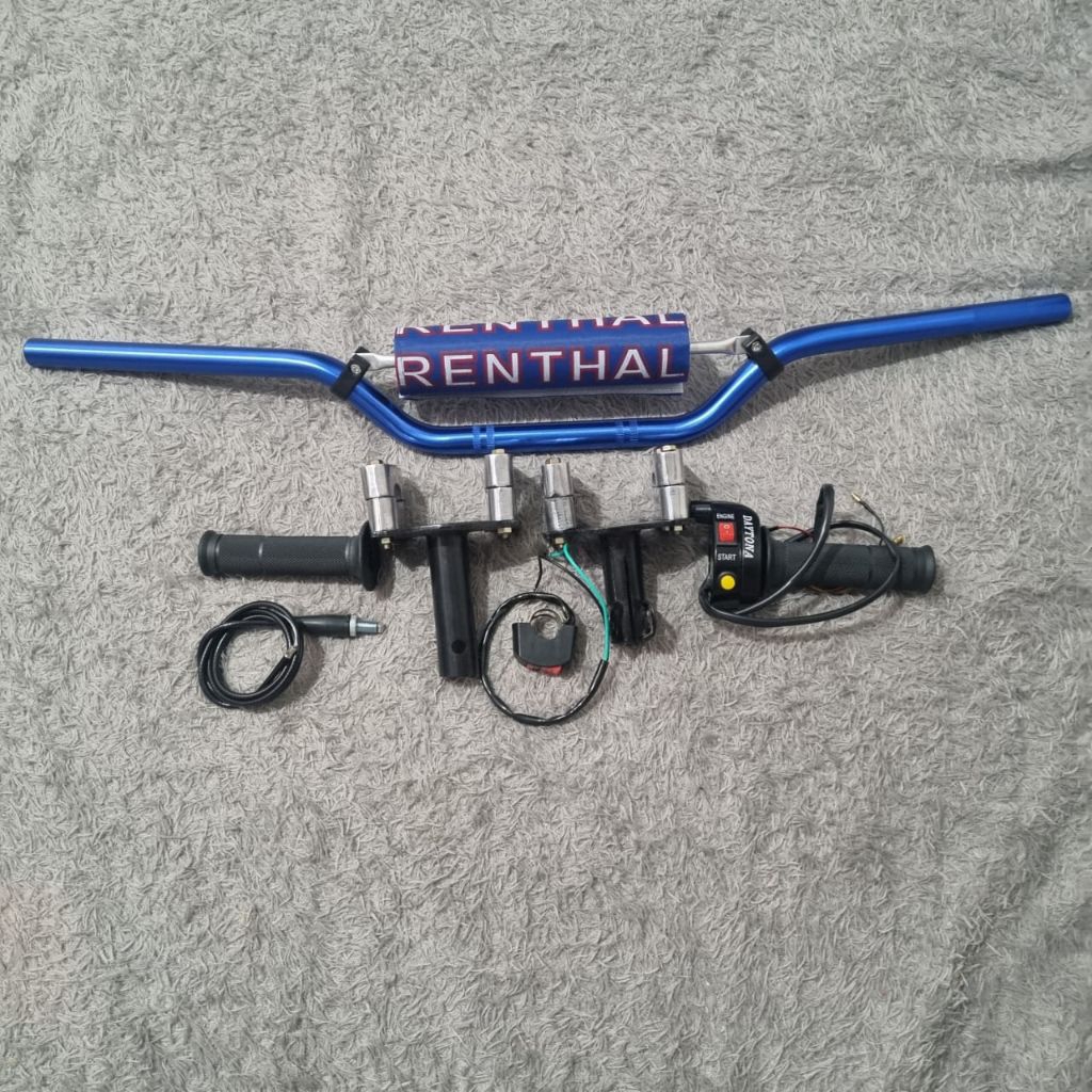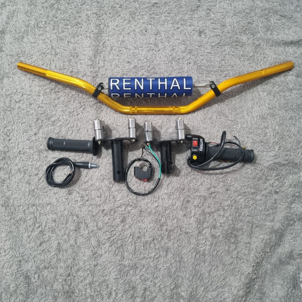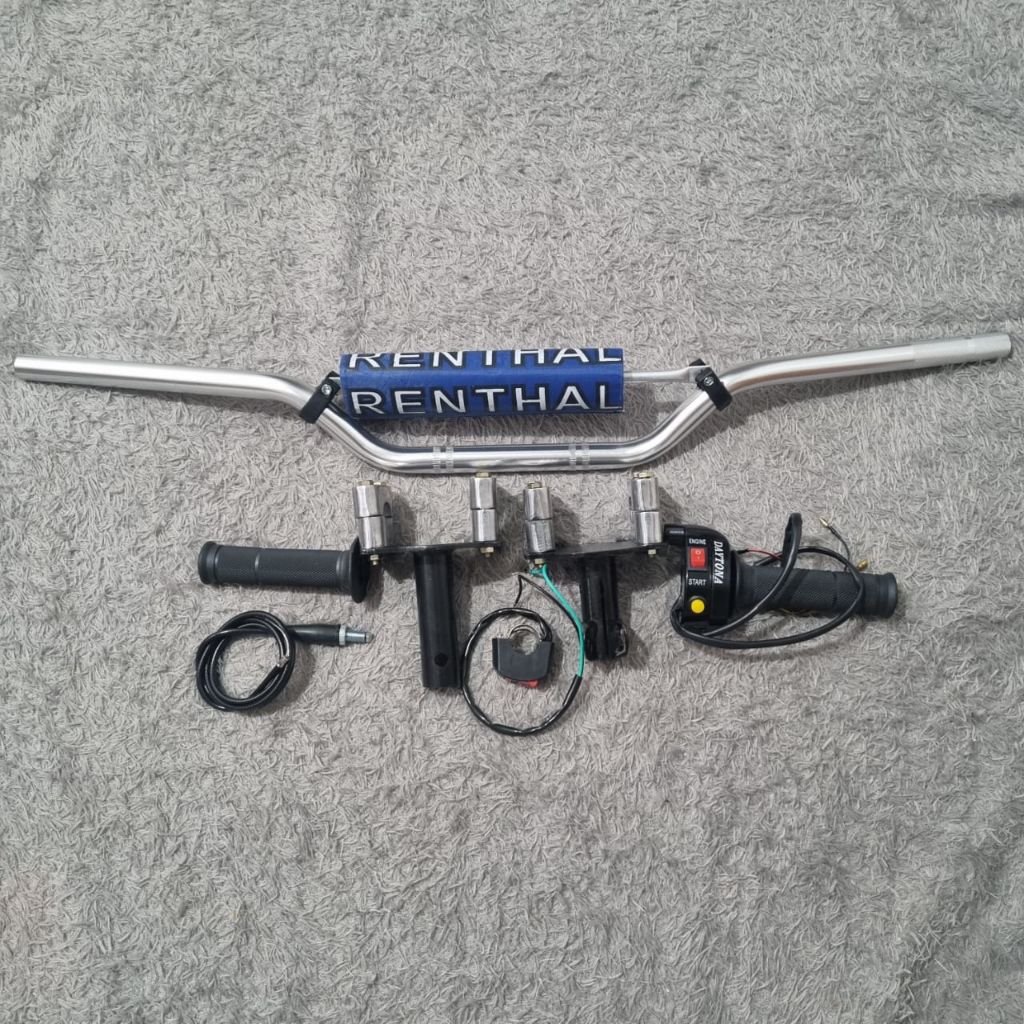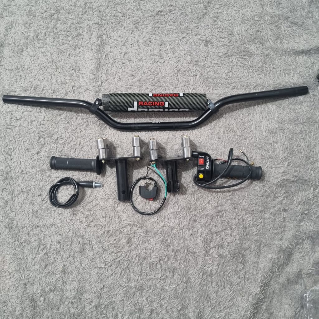 Paketan stang aloy trail CNC adaptor motor bebek dan metik Gasspontan Daytona 2 tombol free saklar on off