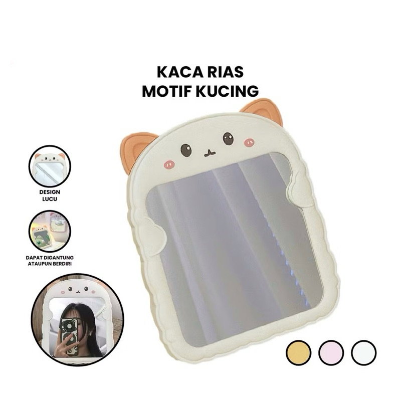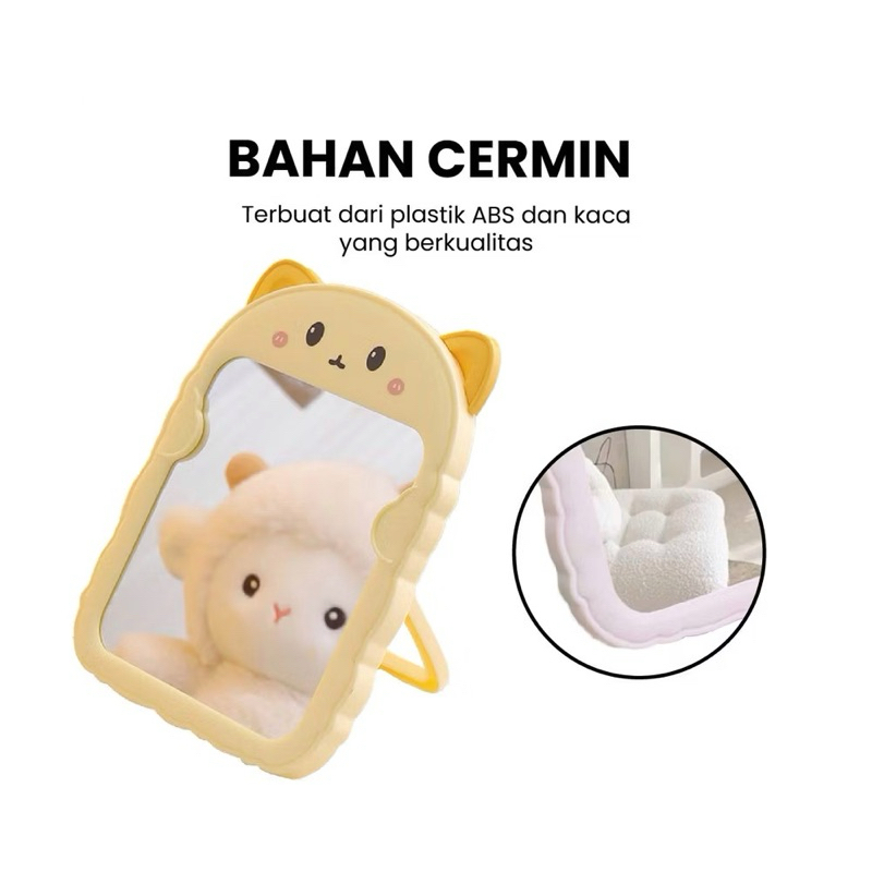 Cermin Meja Rias Bentuk Kucing K153 Cermin Lipat Portable Kaca Rias Make Up Karakter Cermin Rias Duduk Kaca Lucu