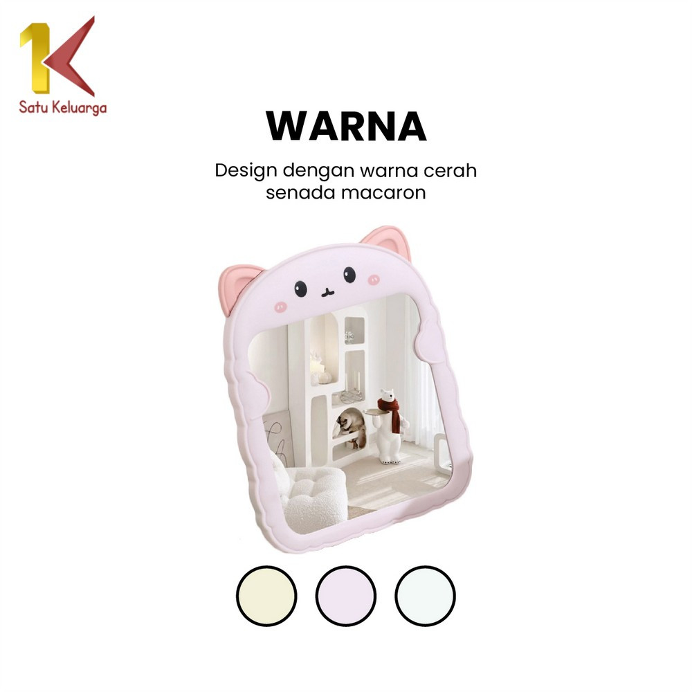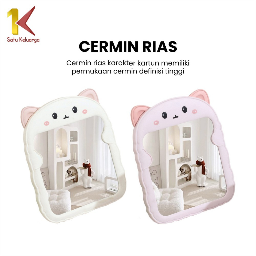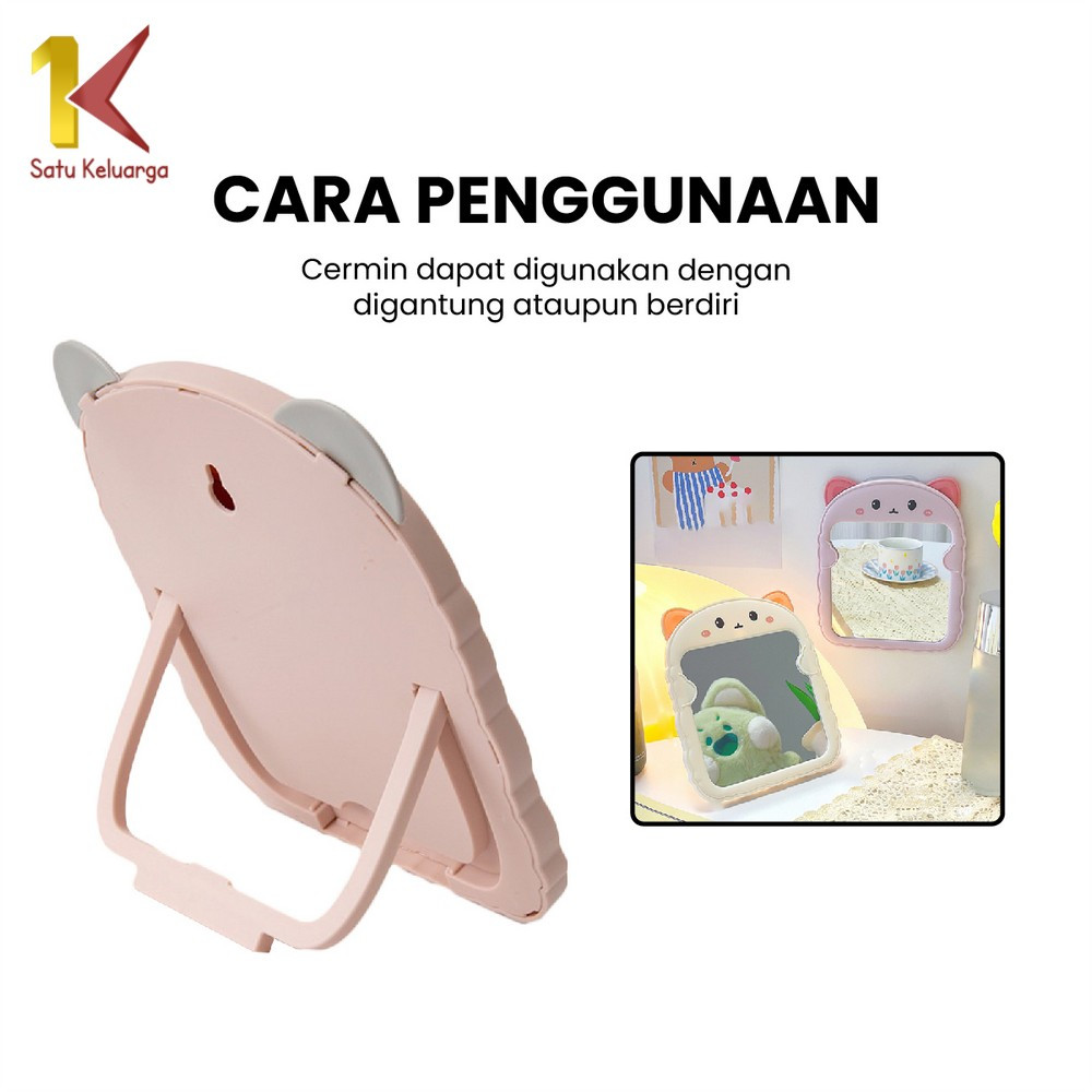 Satu Keluarga Cermin Meja Rias Bentuk Kucing K153 Cermin Lipat Portable Kaca Rias Make Up Karakter Cermin Rias Duduk Kaca Lucu