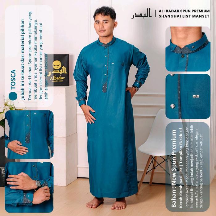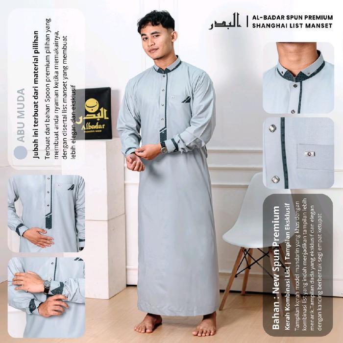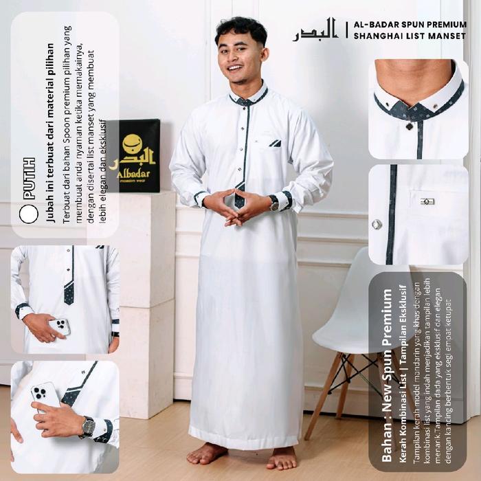 JUBAH PRIA MUSLIM DEWASA AL BADAR KATUN SPUN POLIESTER MANSET - PUTIH, S