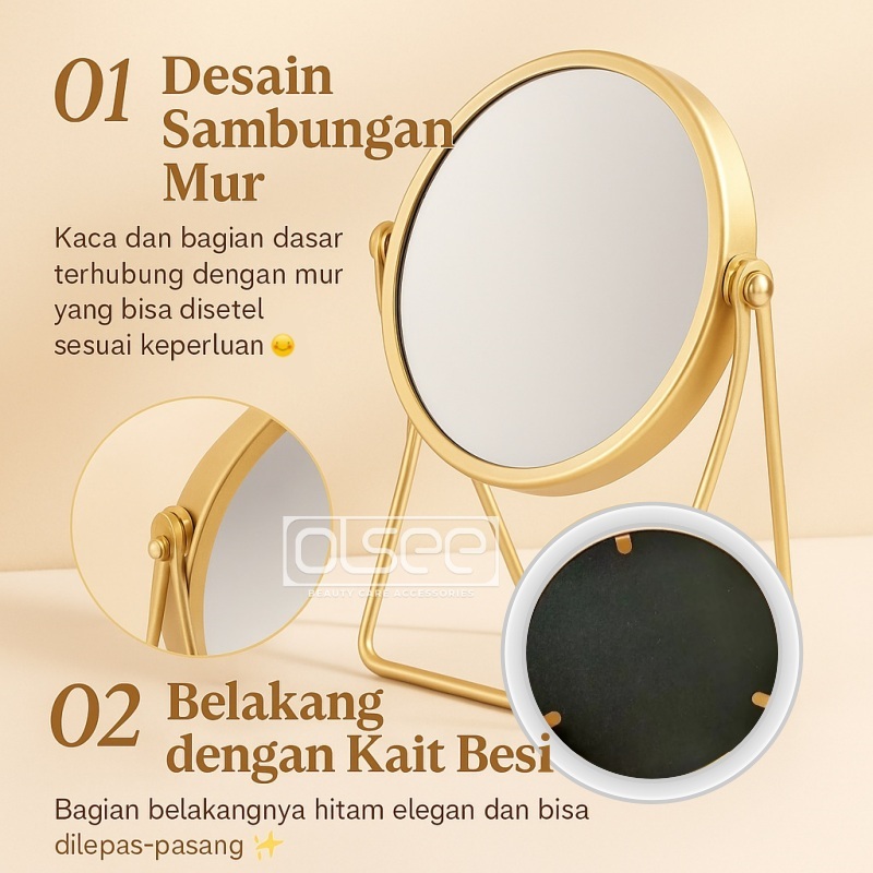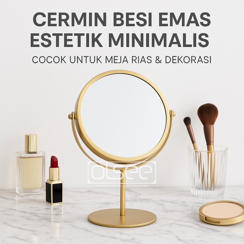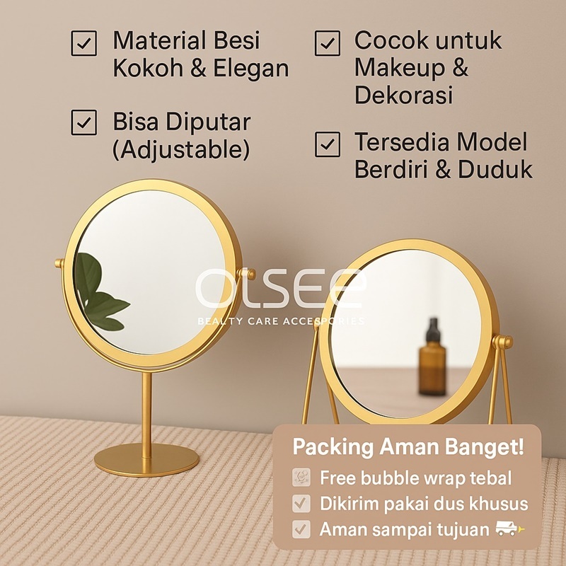 OLSEE - Cermin Make Up Meja Aesthetic 2 Sisi Standing Mirror Korea Gold Kaca Rias Bulat Elegan Cermin Emas Minimalis S1226