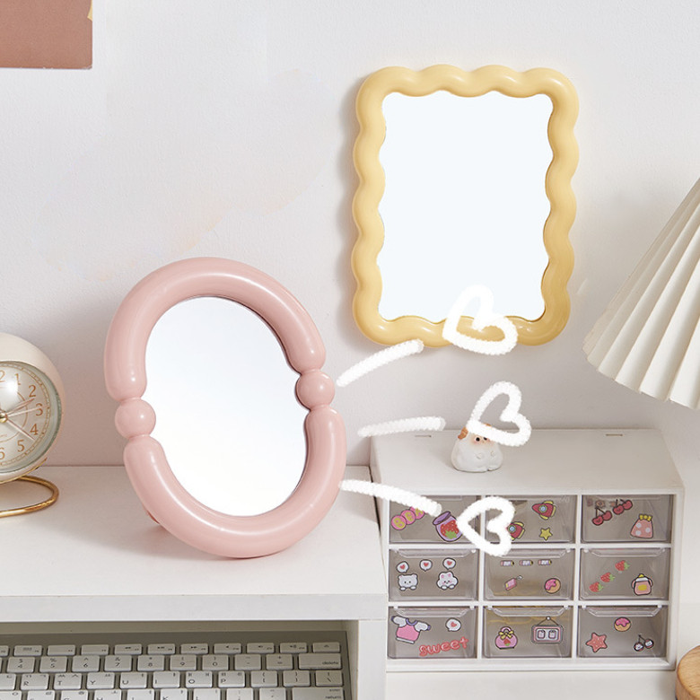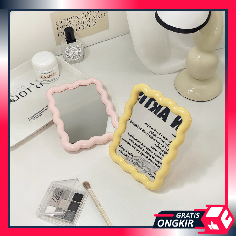 Gratis Ongkir - C6556 Cermin Rias Oval dan Gelombang / Kaca Rias Simple / Makeup Mirror / Cermin Rias Estetik / Cermin Stand Makeup
