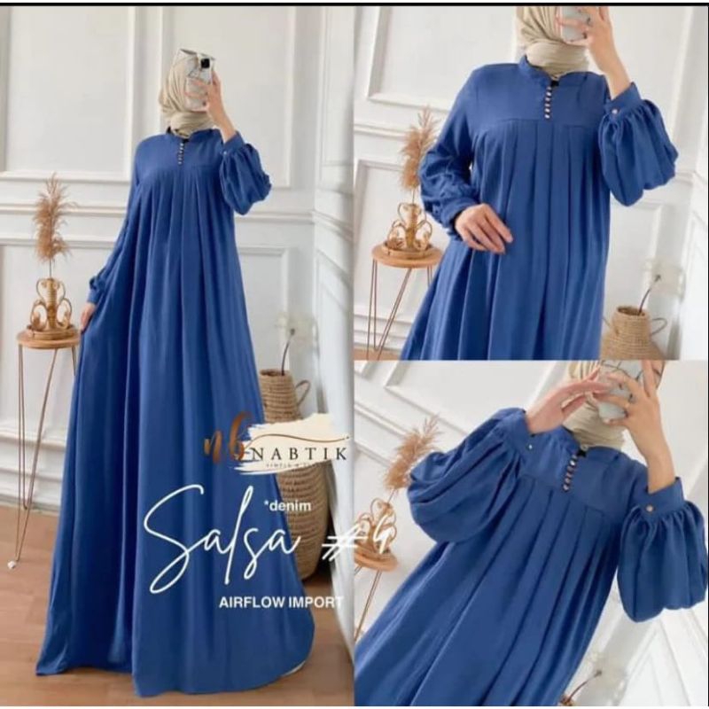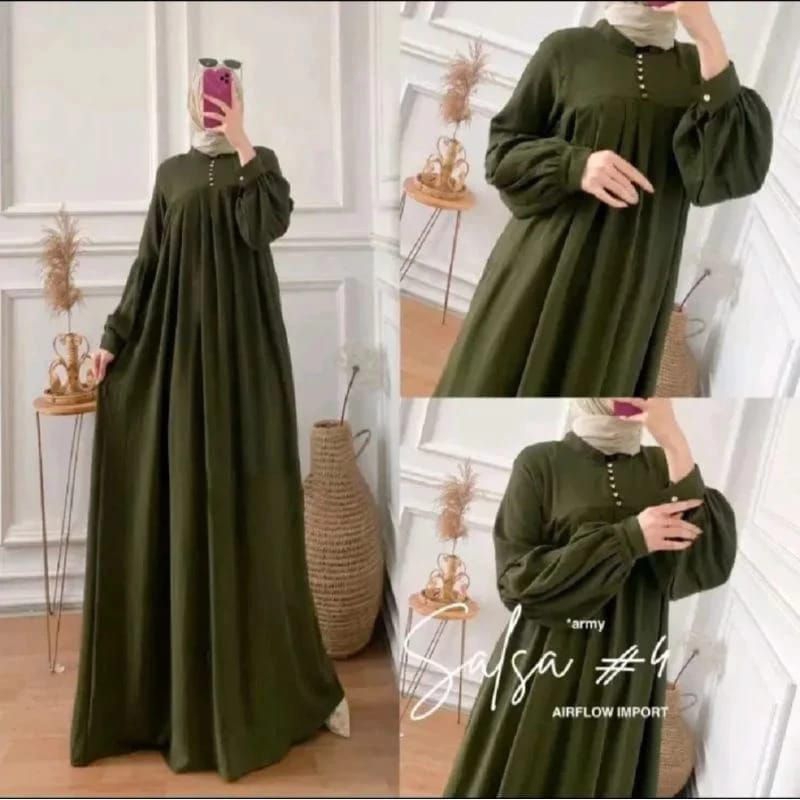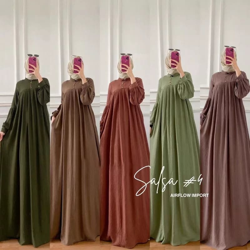 Gamis Salsa Crincle Premium Gamis Wanita Kancing Busui Salsa Dress Crincle Airflow