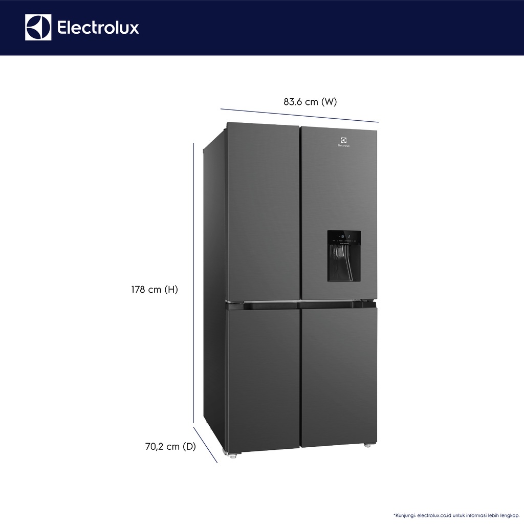 Kulkas Electrolux 537L EQE4960A-B 4 Pintu Dispenser Inverter