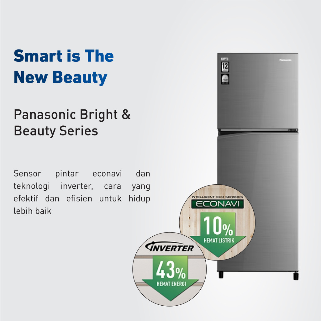 Panasonic NR-BB250V-H Kulkas 2 Pintu Top Freezer + Inverter - Grey