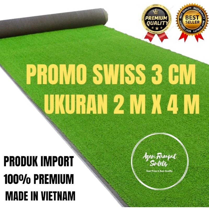 KARPET RUMPUT SINTETIS 1 ROLL UKURAN 2X4 METER TIPE SWISS TEBAL 3 CM
