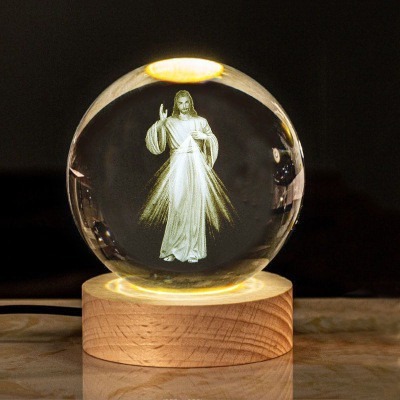 Lampu Tidur Salib Bunda Maria Tuhan Yesus Keluarga Kudus / Bola Kristal Yesus / Bola Kristal Salib Bercahaya / Souvenir Acara Awam Gereja / Hadiah Ulang Tahun / Dekorasi Desktop Kantor / Glow Lamp