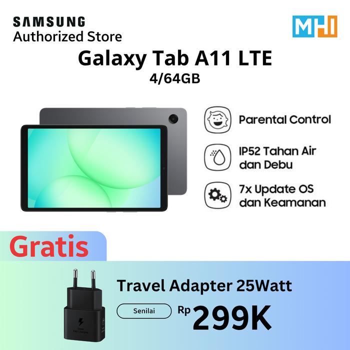 SAMSUNG GALAXY TAB A11 4/64GB LTE/WIFI, ORIGINAL, GARANSI RESMI - 4/64GB GRAY WIFI
