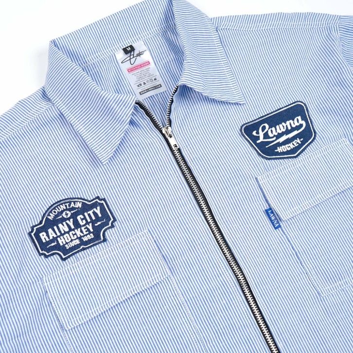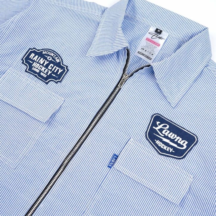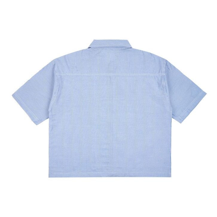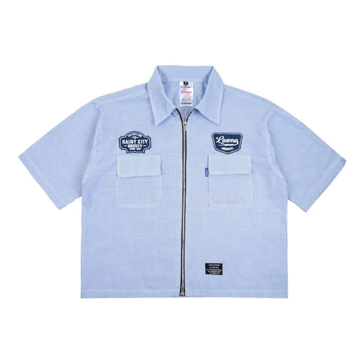 [Star] Kemeja Pria Lengan Pendek Workshirt Boxy Double Zipper Stripe Rainy City Biru Keren Terbaru Kekinian
