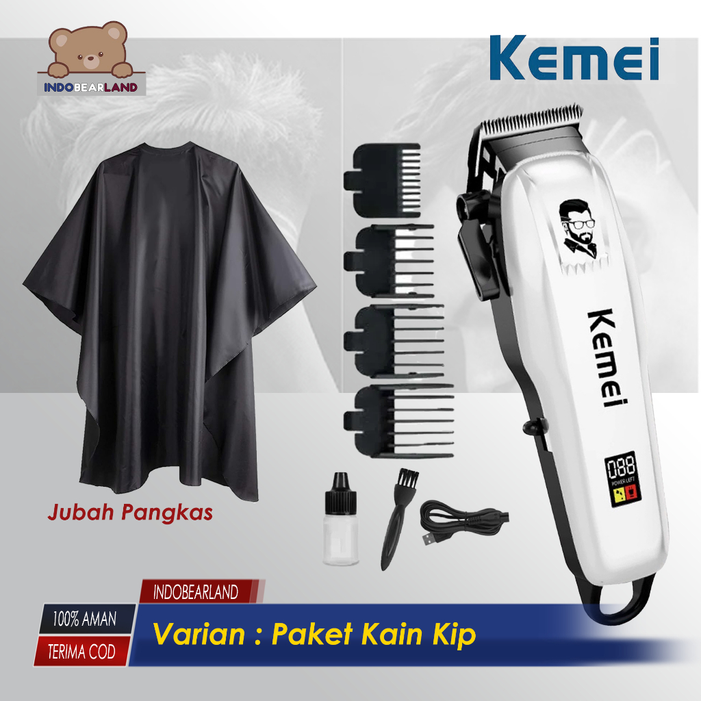Mesin Cukur Rambut Elektrik Paket Lengkap Barbershop Kemei Cas dengan LED Digital Indikator Original