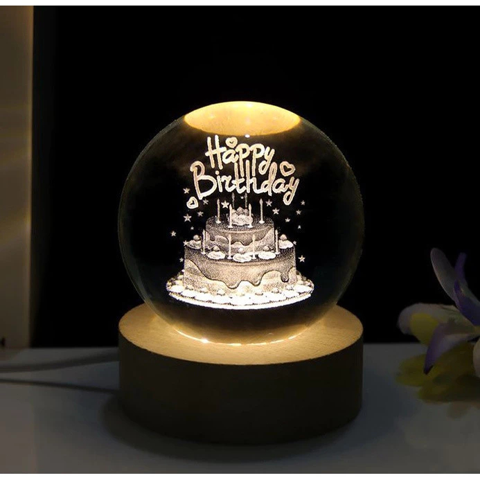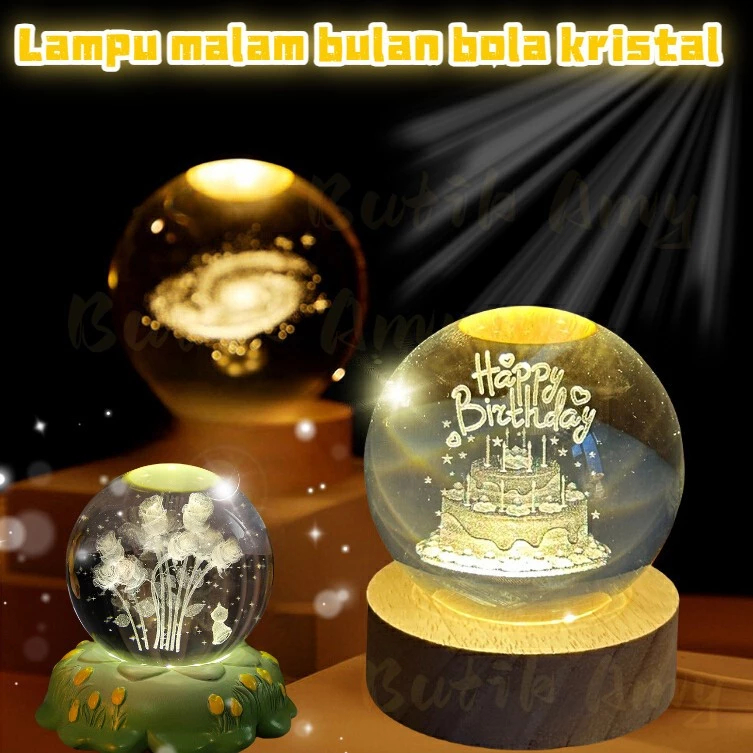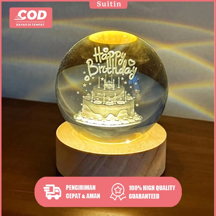SUITIN Lampu Buat Kamar Tidur Lampu Hias Led Lampu Hias Kamar Tidur Hadiah Spesial Lampu Malam Bulan Bola Kristal Happy Birthday Hadiah