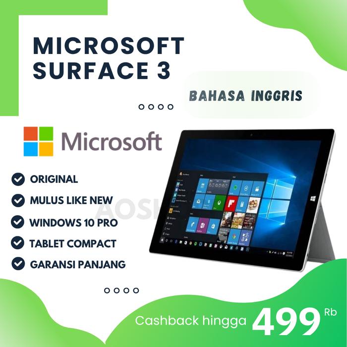 TABLET WINDOW MICROSOFT SURFACE 3 RAM 4GB 64GB SEKEN ORIGNAL - - TAB + CHARGER