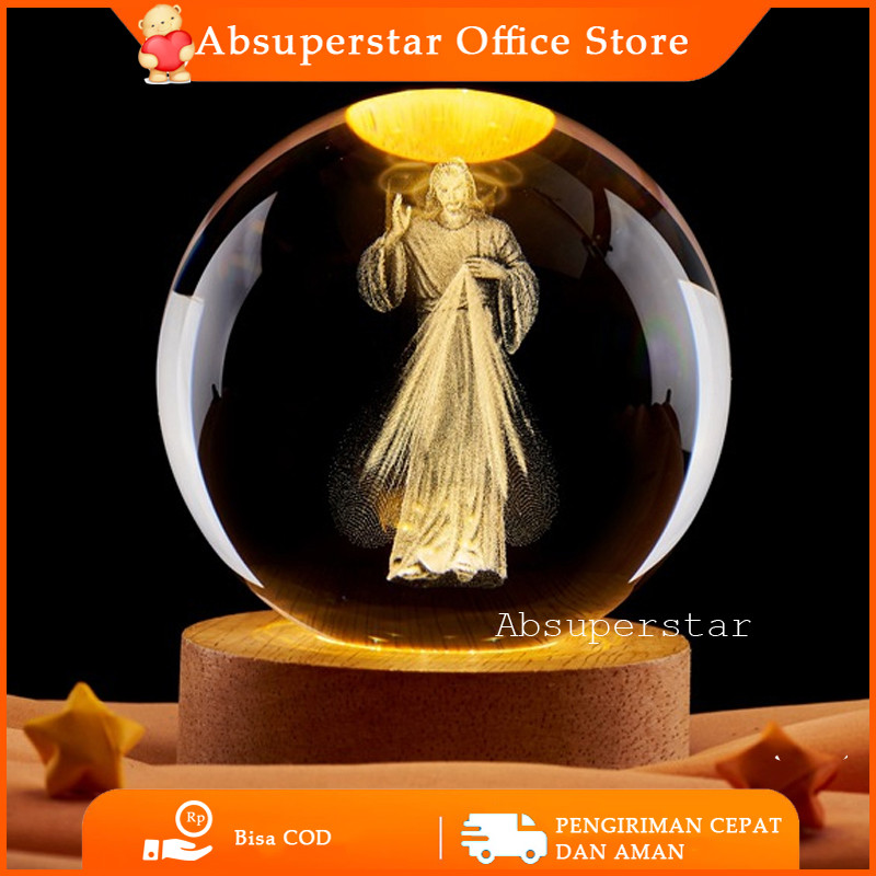 Bola Kristal Salib Bercahaya / Bola Kristal Yesus / Souvenir Acara Awam Gereja / Hadiah Ulang Tahun / Dekorasi Desktop Kantor / Lampu Tidur Salib Bunda Maria Tuhan Yesus / Glow Lamp