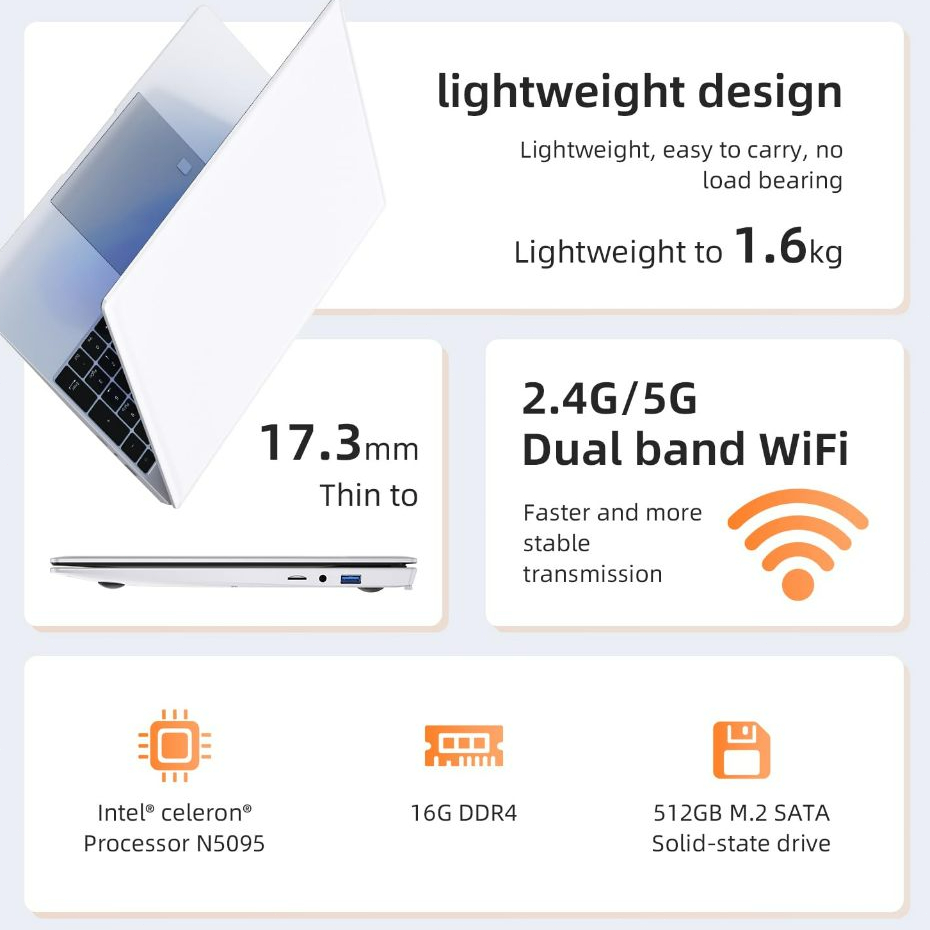 [100 PERSEN Baru] UNIG Laptop Murah RAM24GB SSD1TB 15.6'' IPS Windows 11 Pro Intel Celeron N5095 Processor Fingerprint Unlock