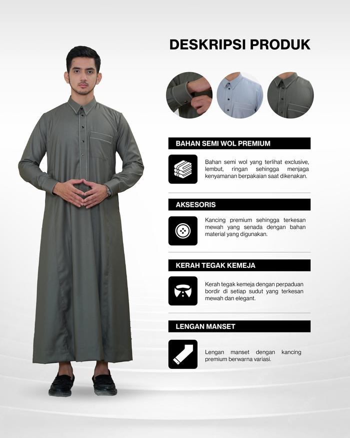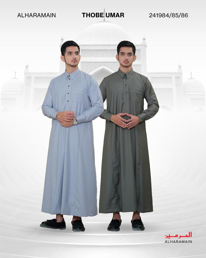 AL HARAMAIN SERIES SEMI WOL THOBE UMAR JUBAH / GAMIS PRIA REMAJA & DEWASA (241984/85/86) | BIRU GELAP | HIJAU LUMUT | ABU KEHIJAUAN - BIRU GELAP, 46 S (REMAJA)
